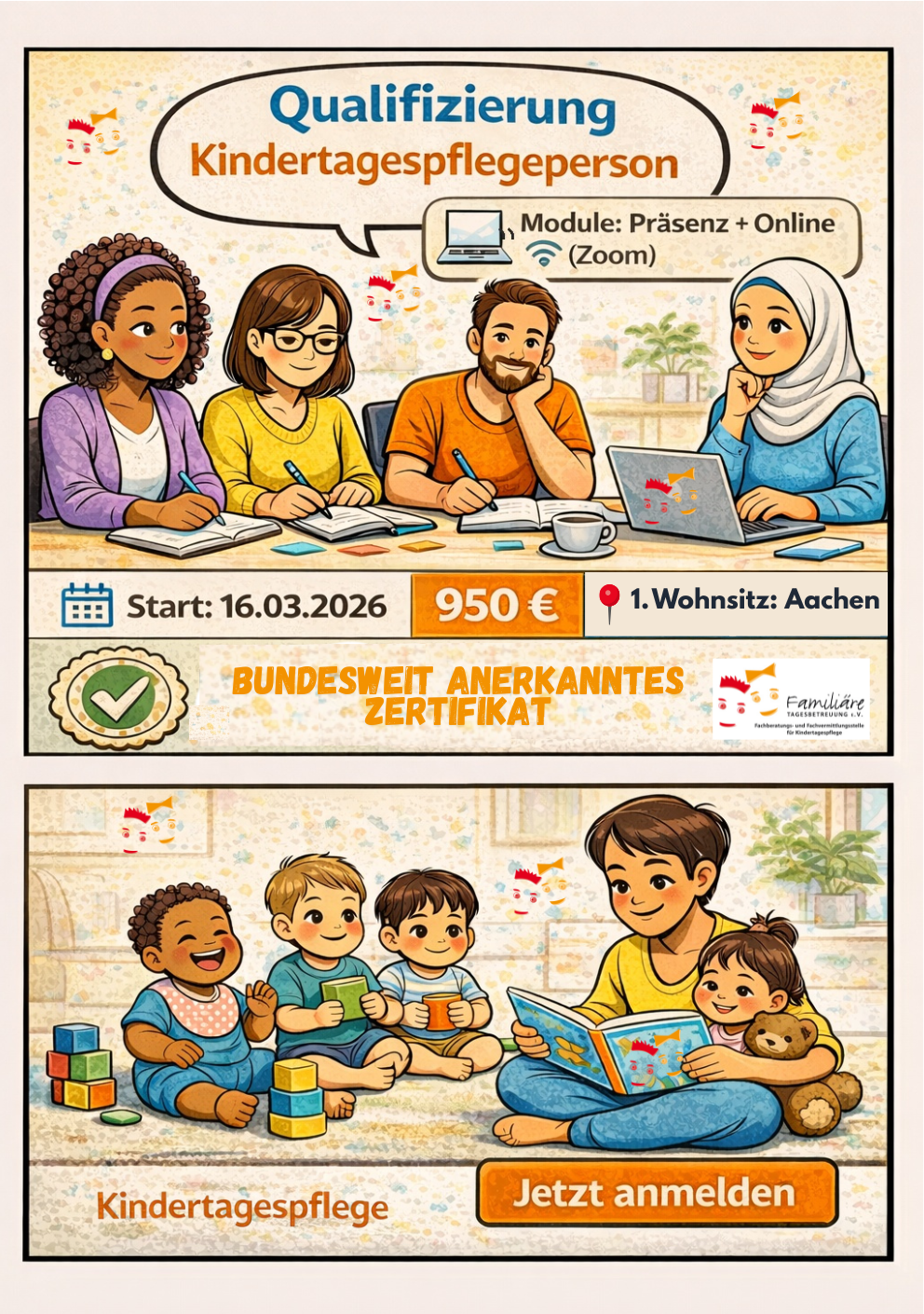 Die Familiäre Tagesbetreuung Aachen ist zertifizierter Bildungsträger für Kindertagespflege.